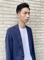 サイドをスッキリしつつ、髪のくせをうまく利用して、ビジネスでもカジュアルでもいけるメンズへア。大人の男性でも、似合うヘアスタイルです。カラーは、黒に近いブルーブラックです。