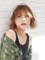 26mmで外ハネに巻き、表面をワンカールでナチュラルスタイリング。【気に入ったスタイルは「ブックマークする」ボタンを押して、ご来店時ご提示ください】斜めバング,アシンメトリー,伸ばしかけ,大人ボブ,センターパート,グラデーションカラー,小顔,マッシュ