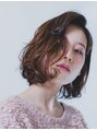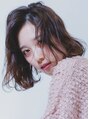 大きく動くワンカールとちょっぴりスパイスの効いたアップバング★素肌感のあるメイクが程良い抜け感をプラス★