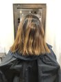 色落ちが黄色になりやすい髪質。ベースはトーンを落として全体にエアータッチでハイライトを入れました♪