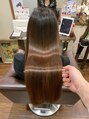 通常のトリートメントではアプローチの難しい熱のダメージなどにも対応できる汎用性に富んだヘアケアシステム。毛先まで潤いに満ちた柔らかい質感に自然な艶が自慢です。繰り返す事により、毛髪の強度を高め、様々な施術のクオリティを高めることができます