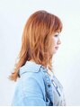 顔まわりにしっかりとレイヤーをいれたウルフスタイルです。 短めのバングと外ハネをいれたレイヤーは相性抜群!イメージチェンジしたいけど、長さは残しておきたい方にオススメのスタイルです。