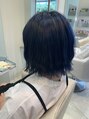 ブルーヘアー/ブリーチ1回/暗髪/透明感カラー/切りっぱなしボブ