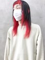 メンズのロングスタイル!前髪とインナーをブリーチ後、酸性カラーでマックスの赤に!!
