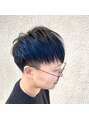 3ミリのツーブロック、襟足もコンパクトに刈り上げてます!ブルーのポイントカラーは、落ち着きながらも遊びゴコロのあるスタイルです。