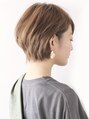 耳掛けスッキリショート。後頭部の丸みをしっかり出してひし形のシルエットにしています。カラーは10トーンのカーキベージュで、赤みの少ない色に仕上げています。毛先にワンカールパーマをかけてスタイリングも簡単になります。