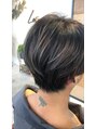 グレイカラーでも出来るデザインカラー。スッキリした首元でも襟足の収まりの良いカット。