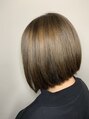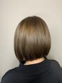 前下がりボブスタイルにローライト入りスモーキーベージュカラーローライトが入っていることにより明るすぎず暗すぎずおしゃれ度UPなカラーです!