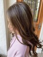フェイスフレーミング風になるように、顔周りにハイライトをオン♪ベースをあまり暗くし過ぎず、ベージュ感が残るくらいのカラーリングにすると、ふんわり軽い質感になります☆