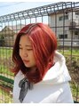 一度ブリーチをし、鮮やかな赤色に仕上げました。