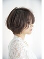 透明感を意識した自然な黒髪カラー。地毛に近い明るさで肌色良く見せながら透明感を与えます。丸みのある洗練されたボブスタイルとの相性で大人かわいい印象に。