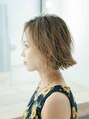プツンッとした切りっぱなしのラインに表面に少しレイヤーを入れることで動きのあるボブに。根本はあえて黒く残すことで全体に馴染みやすく毛先にかけて明るさをだし重すぎないヘアースタイルに。前髪があっても可愛いこと間違いなし。
