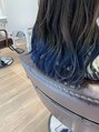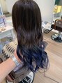 毛先は染めたいけど全体は染めたくない!との事だったので毛先をブリーチしてネイビーアッシュののせていきました。色味の入っているところ以外は地毛になります。