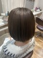 ショートボブとベージュで印象を柔らかく女性らしい雰囲気に。毎日のスタイリングが楽なように、ブローとアイロン要らずのスタイルになります。髪質、状態に合わせてトリートメント、中性ストレートがオススメになります。