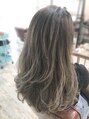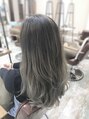 全体にバレイヤージュハイライトを入れて10トーンのグレージュを被せました!バレイヤージュで明るくするところとしないところを作ることで陰影が出てより立体感が出ます!グラデーションの境目もボケるので綺麗に!