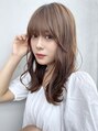 32mmコテで全体をウェーブ巻きにし、顔まわりに動きを付けたスタイル。【気に入ったスタイルは「ブックマークする」ボタンを押して、ご来店時ご提示ください】切りっぱなしロブ,抜け感,くせ毛カット,小顔ボブ,ショコラベージュ,ヘムライト,かき上げ