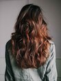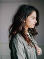 しっかりとしたカール感あるラフでかわいいロングスタイル。無造作くせ毛風の外国人風カールに。色は今の季節にぴったりのアッシュグレージュを!かきあげバングで誰でもヘルシー外国人風スタイルに!