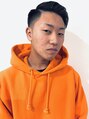 前髪をかき上げた、サイドパートのフェードスタイルです。色は、ブリーチ後に、アッシュグレイ色を入れてます。