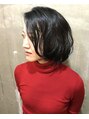 全体的に重めのワンレンスタイルです。そこに太めのロッドで癖毛のようなパーマを当てました。スタイリングのしやすさが◎です。