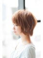 全体はマッシュにレイヤーを入れた、ナチュラルショート♪シルエットは重めに、毛先は軽く作って動きを見せるようにカット★カラーは13トーンのシルキーベージュでハイトーンでもツヤ髪に。