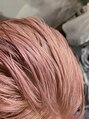 淡いピンクベージュのウルフをジェルでオールバックにしてみました!いつも下す方は新鮮でいいと思います!ブリーチは2回か3回は必要です。