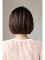 お顔の印象がしっかり出るように薄めのショートバングの切りっぱなしボブです。その人らしいナチュラルなヘアスタイルがスタイルのポイントです。少しお洒落なボブスタイルに仕上げたい方、ライン感がある綺麗なボブのカットにしたい方にオススメです。