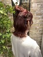 ブリーチありのチェリーピンク。暖色人気も高まっているので一度トライしてみてもいいかも!伸ばしかけの長さもアレンジでスッキリオシャレに!雰囲気のある暖色系、スタイリングにしますので是非悩んでる方ご相談ください。