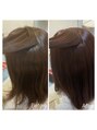 - 髪質改善のダメージ修復効果と縮毛矯正のくせを抑える効果のいいところを組み合わせたトリートメントです!