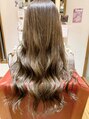 フェイスフレーミングで顔周りを一度ブリーチし、ミルクティーカラーに。
