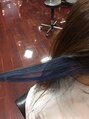 サイドからネープのインナーにブリーチ後ブルーのカラーを施しています。