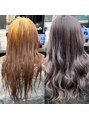 グレージュカラーのロングスタイルです。度重なるカラーで残留色素が残っておりますが、デザインカラーは対応可能ですのでお気軽にご相談下さい。光によっての見え方も変化するおすすめな透明感カラーです。ヘアケア&ケアブリーチはおすすめです。