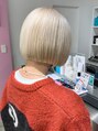 ホワイトブロンドの切りっぱなしボブです。ブリーチで綺麗にベースを作り、ホワイト系のカラーに仕上げています。綺麗なブリーチベースがあれば、毎回ブリーチはリタッチだけで綺麗なカラーが表現可能です!