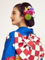 つるんと美しい面のシニヨンが特徴のスタイル。きちんと感もありつつ、髪飾りは様々な色味のお花で華やかに♪振袖にぴったりのまとめ髪です。【EARTH新松戸店】
