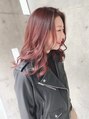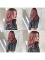 透け感の出るコーラルレッドをグラデーション風にカラーリング。トレンドのウェーブ巻きにも似合う暖かみのあるカラーリングです。