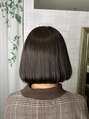 ブルースモークアッシュカラーです。ボブは若干前下がり気味に。ブリーチなしでもできる落ち着きめな透明感のあるカラーです。