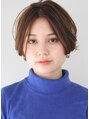 フラットめの少し前下がりのショートボブです。少し前下がりにする事で顔をシャープに見せる効果があります。耳掛けして2wayでお楽しみ頂ける飽きないスタイルになっています。