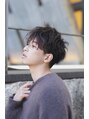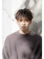 やや長めのバングの前下がりスリークマッシュにゆるめの無造作パーマをかけたスタイル。センターパートもやりたい方にオススメ!