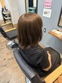 裾は肩につく長さで、トップとの差をつける事で骨格に沿った丸みのあるレイヤースタイルになりました。カラーは明るめのラベンダーアッシュ系で染めています