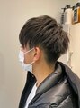 ツーブロックメンズスタイルです。バックのブロックの位置を高めにして前下がりスタイルにしてるので、後ろがスッキリで頭の形が綺麗に見えます(^^)