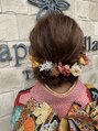 成人式ヘアアレンジふぁっと仕上げでインナーカラーを魅せるよう仕上げました。お似合いですね!