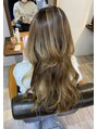 黄色く褪色しているのでツヤ見え黄色を抑えて色持ちを良くしてくれるブルーラベンダー元々いれているハイライトの陰影もでてキレイですカットは毛先の枝毛部分を3センチ程カットしてトップがふんわりなるようにレイヤーをいれてます