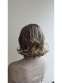 肩より上のボブスタイルです!カラーはブリーチ1回のミルクティーアッシュで染めてます♪短いスタイルは明るいと透明感も出て可愛いです!