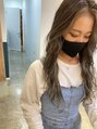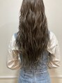 ロングヘアに人気のフェイスフレーミングカラー!ウェーブ仕上げとの相性◎グレージュ系カラーで透明感のある仕上がりに♪