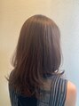 耳の後ろから前上がりにカットしてレイヤーを入れて空気感を出してます。全体の中間から毛先の毛量を調節してロングの重さを払拭してます。カラーも明るめのグレージュで柔らかい雰囲気出してます。