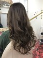 今回は、アディクシーカラーでグレージュ系のカラーに染めて、ダイヤモンドエクステ80本にエクステカットをしてしっかりと重みのあるスタイルにしております。エクステはベースの色と1トーン明るい色と、ハイライト用の3種類使ってます。担当新山口店・TOMO
