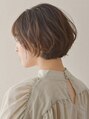 前下がりショートボブスタイルです。バックから前下がりにグラデーションカット。前髪は、眉下で透け感を出します。パーマは、毛先にくせ毛風に緩めでかけています。カラーは、ベージュ系で透明感をプラス。