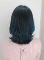 ブリーチしてあるベースにブルー系のカラーかぶせたネイビーカラーにウルフカットを合わせたスタイルです!ネイビーカラーは色落ちも可愛いのでオススメです!