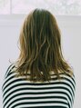 無造作なミディアムレイヤースタイルです。表面にレイヤーが入っているので軽さが出て巻いた時に動きやすくなっています。カラーはナチュラルなベージュ系です。中明度のカラーなので明るすぎず暗すぎず品があるカラーになっています。【稲毛】