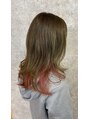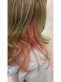 ピンクレッドインナーカラー×ウルフロングです。インナー部分は1回ブリーチ後にピンクレッドカラーを塗布。カットはウルフロング、ハイレイヤースタイルです。インナーカラーですがレイヤーが入っているのでグラデーションカラーっぽく見えます。