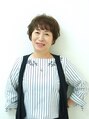 白髪が伸びてきても目立ちにくい明るめベージュブラウンで、肌のトーンもアップします。前髪を作り分け目が出ないようにすることでトップに高さがでます!